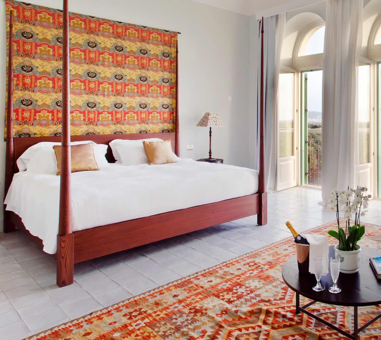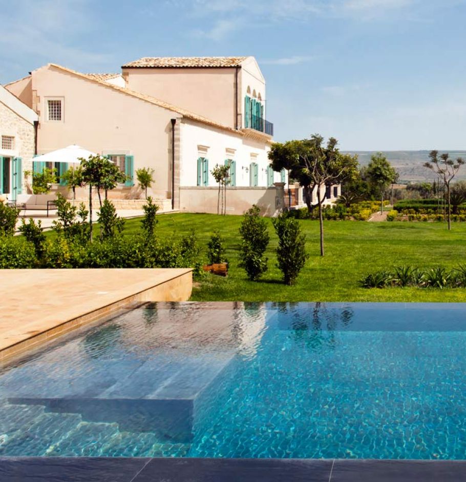 Un portale neoclassico marca l’accesso alla casa padronale ed alle sue tre grandi suites del piano terra, ognuna con un grande salotto, camera da letto matrimoniale e cabina armadio: due di esse hanno l’accesso diretto alla terrazza che si affaccia sul giardino all’italiana.