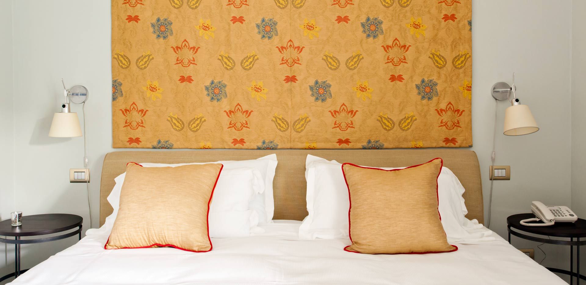 Tra le suites del pianterreno si trova un salone comune con il soffitto decorato da leggiadri affreschi art-nouveau, da cui pende un grande lampadario di vetro di Murano.